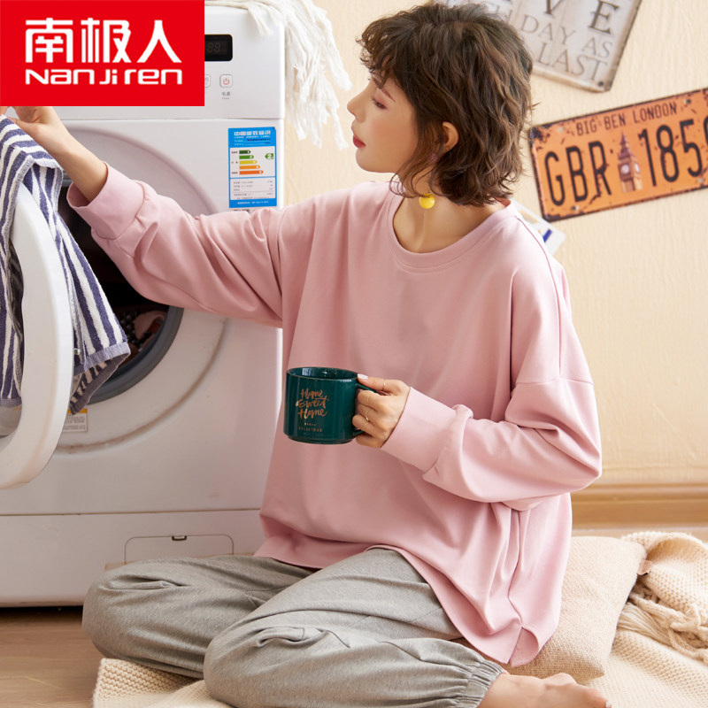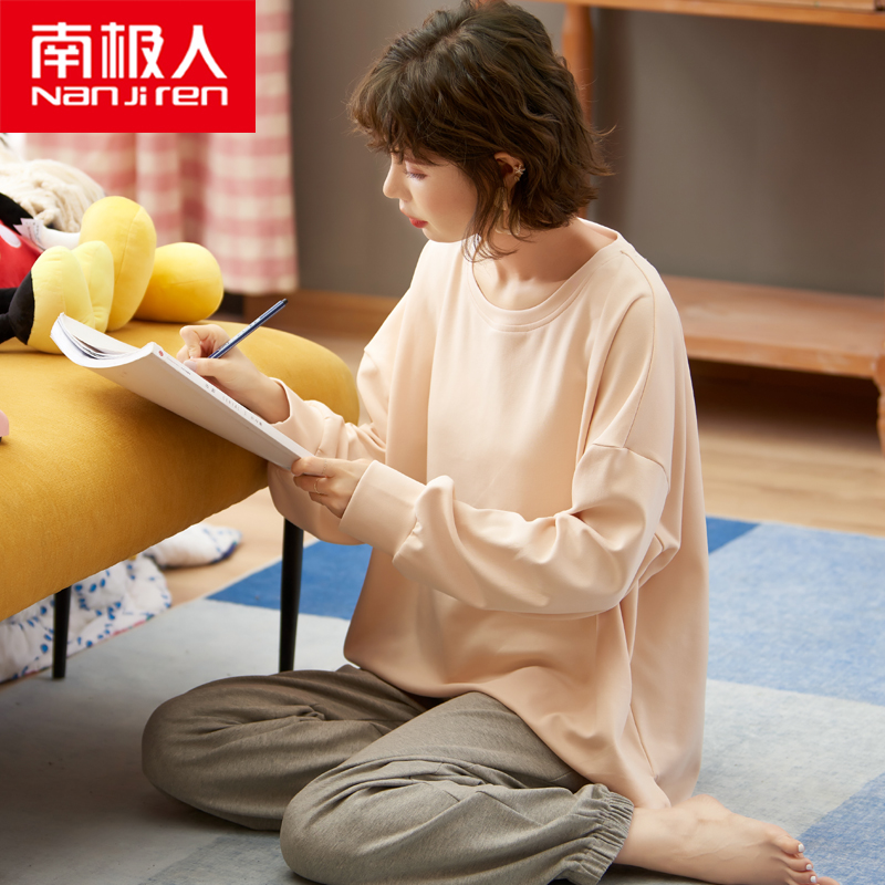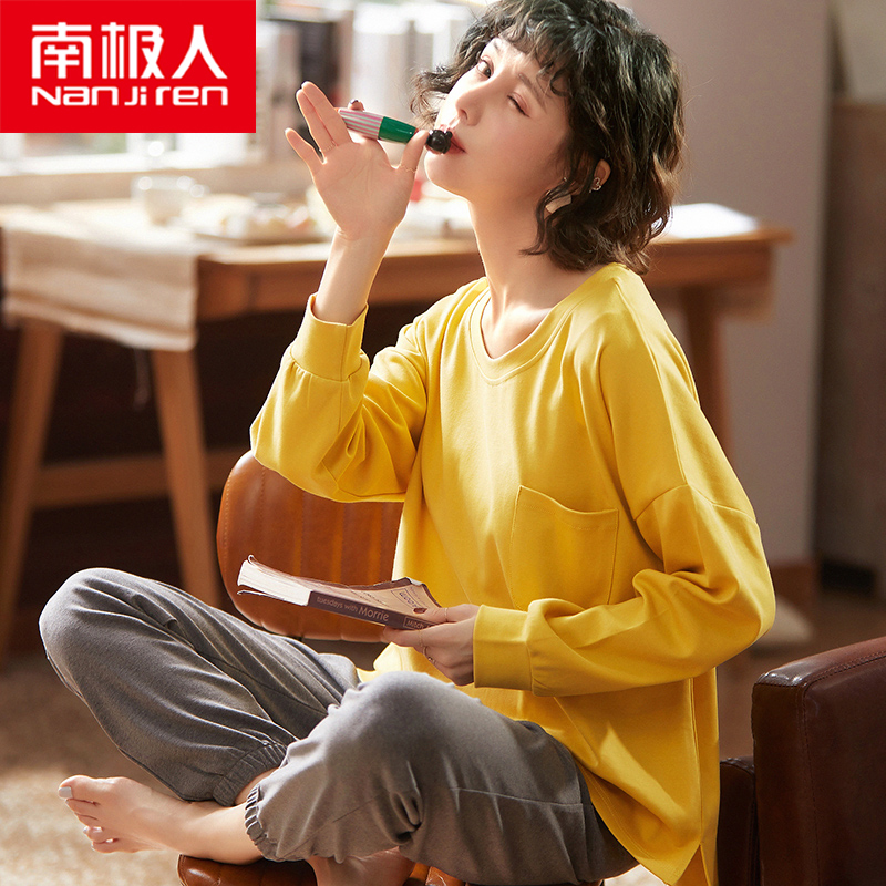 South Pole pure cotton pyjamas woman autumn and winter long sleeves Two-style suit Spring Fall less Lady loose can be outside wearing home clothes