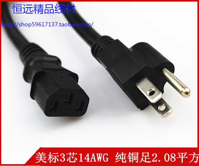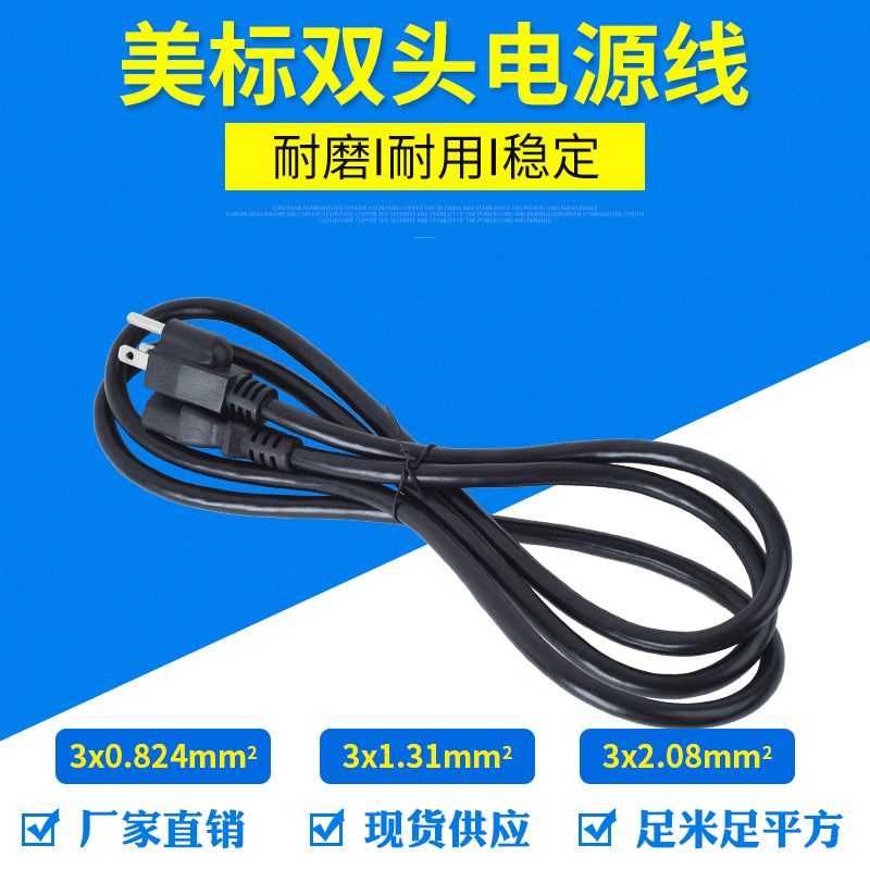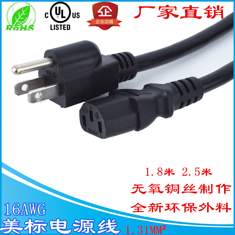 American standard power cord three-hole 3-core 0 824 1 31 2 08 square 14 16 18AWG American plug with wire