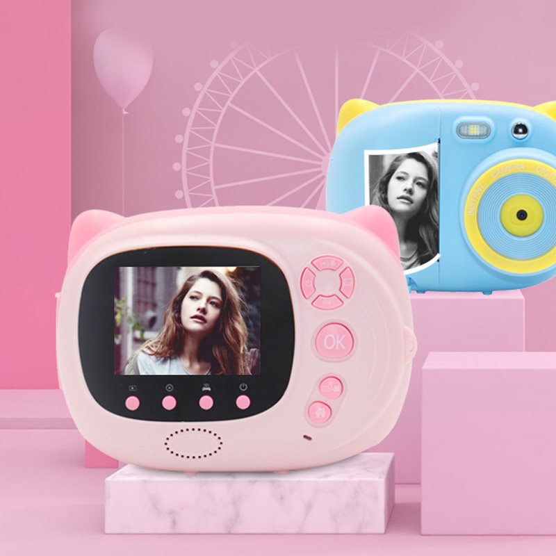 AMKOV flapping up children's digital camera to take photo print black and white photo thermal pocket camera toy