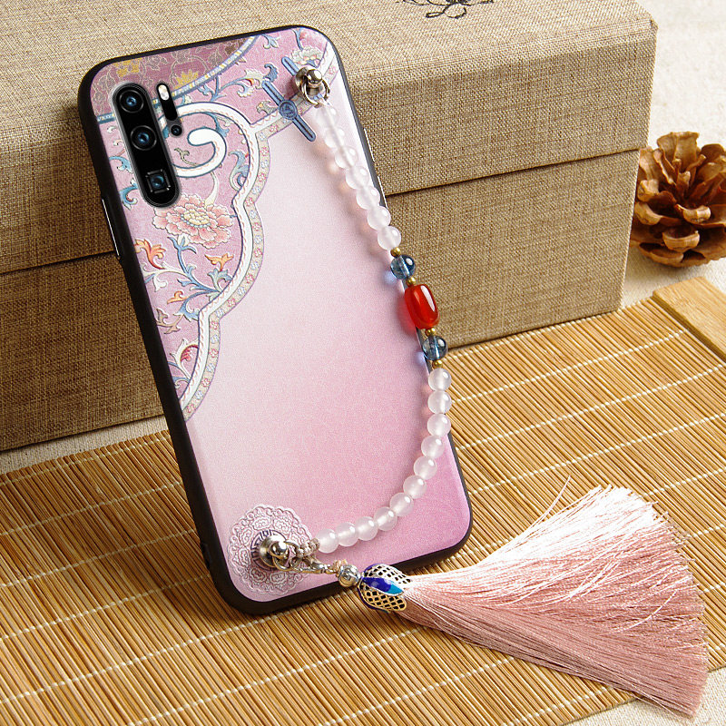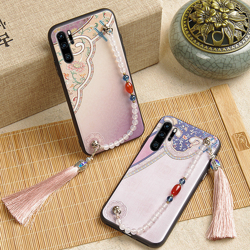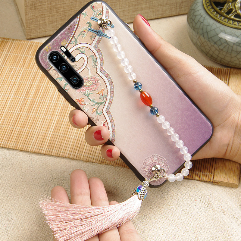 Suitable for plowing Huawei p30pro mobile phone protection shell with Chinese wind P30 protective shell palace P20Pro hanging bead relief por mobile phone protection shell soft rubber ins wind creativity business brief