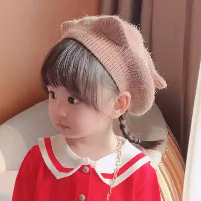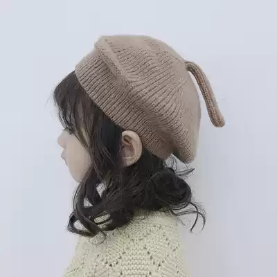 Infant knitted wool hat girl wool hat baby cartoon cat ear tail autumn and winter beret fashion