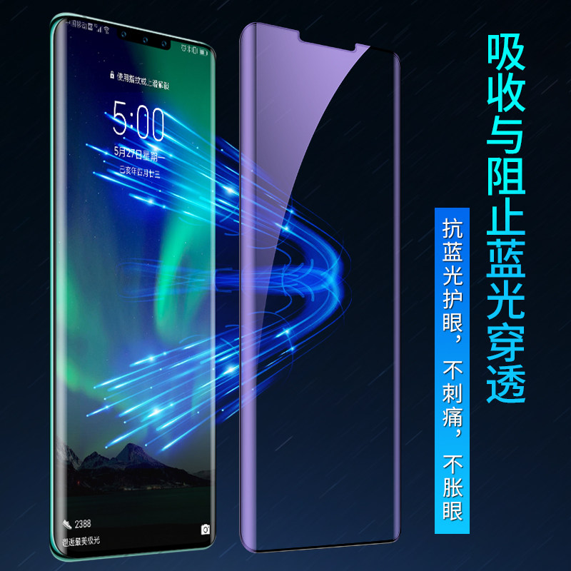 Suitable for Huawei mate30pro tempered film mate30 full screen cover mobile phone protective film mata anti-blue light m30 eye protection anti-collision strip film por anti-fall HD thin anti-fingerprint m