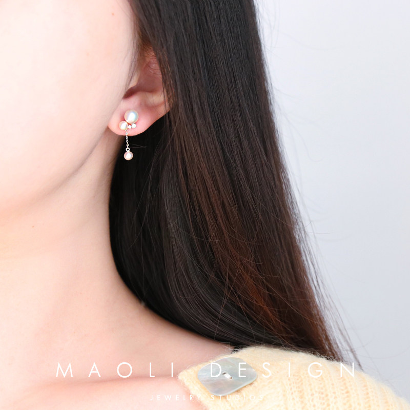 MAOLI 925 pure silver gilded small crowdsourced fine natural bright light pink Freshwater Pearl Earrings Earrings Earrings