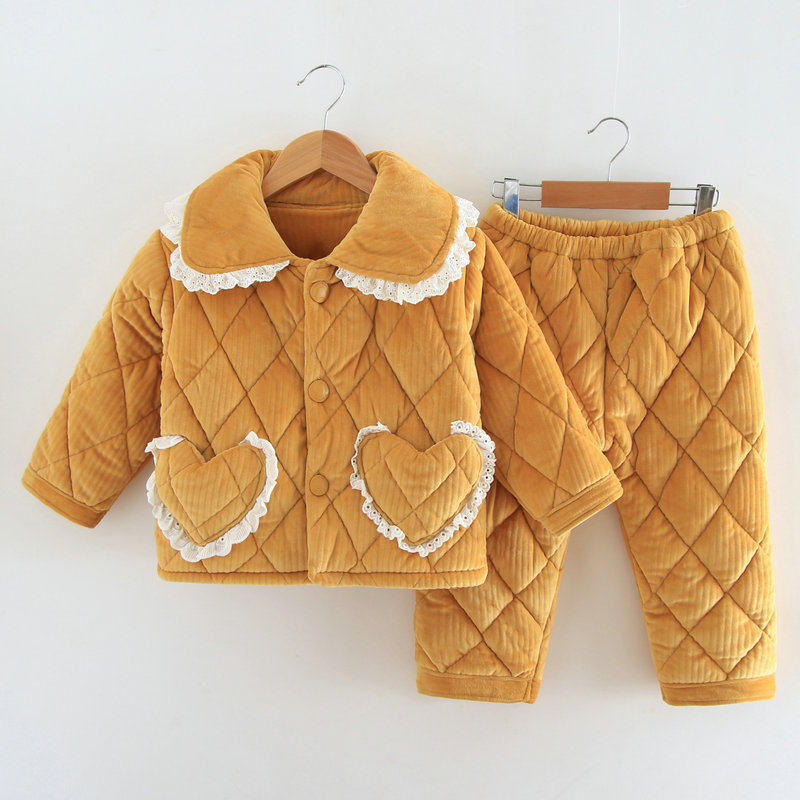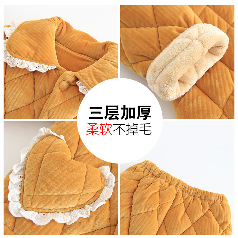 Winter children's pajamas and girls' suit three-layer thickened quilted flannel medium and big children's coral fleece boys' home clothes