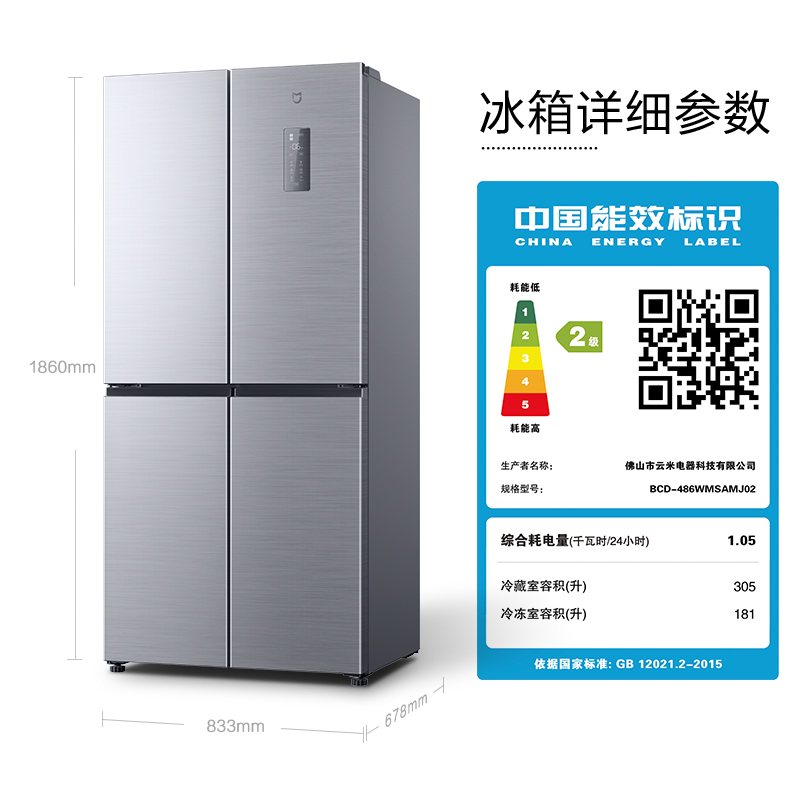 Xiaomi 486 liter cross four doors embedded air-cooled frost-free energy saving household intelligent home appliances Mie family refrigerators