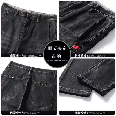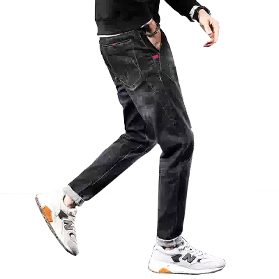 Tide brand stretch jeans men's slim feet autumn and winter new men's casual long pants Korean trend Wild