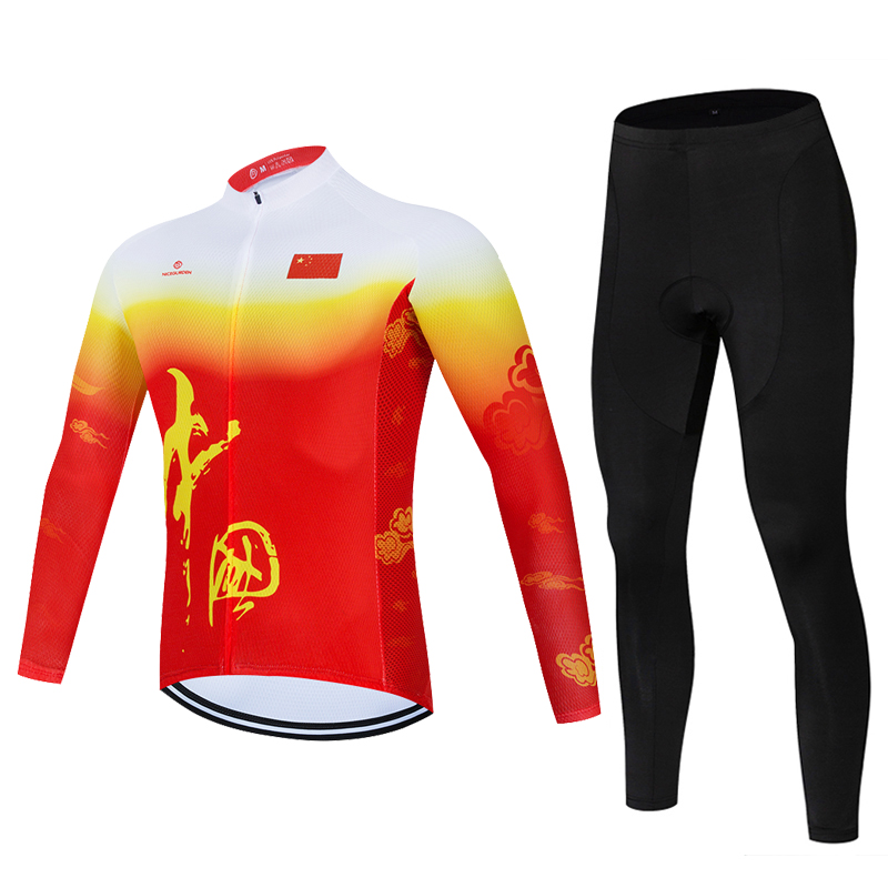 Chinese wind climbing car riding suit Garnapping thickened long sleeve suit for men and women autumn and winter self-cycling to customize