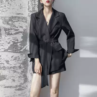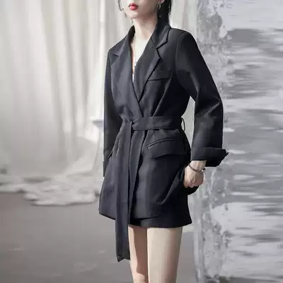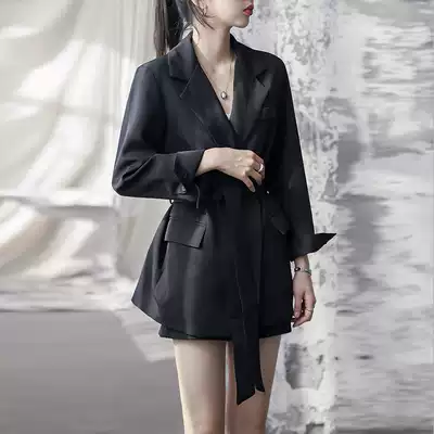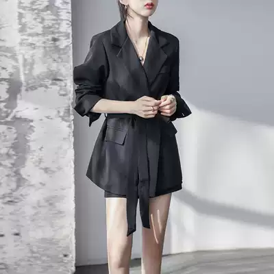 Small suit jacket female spring and autumn waist loose Korean version of students British style temperament casual black long version of suit
