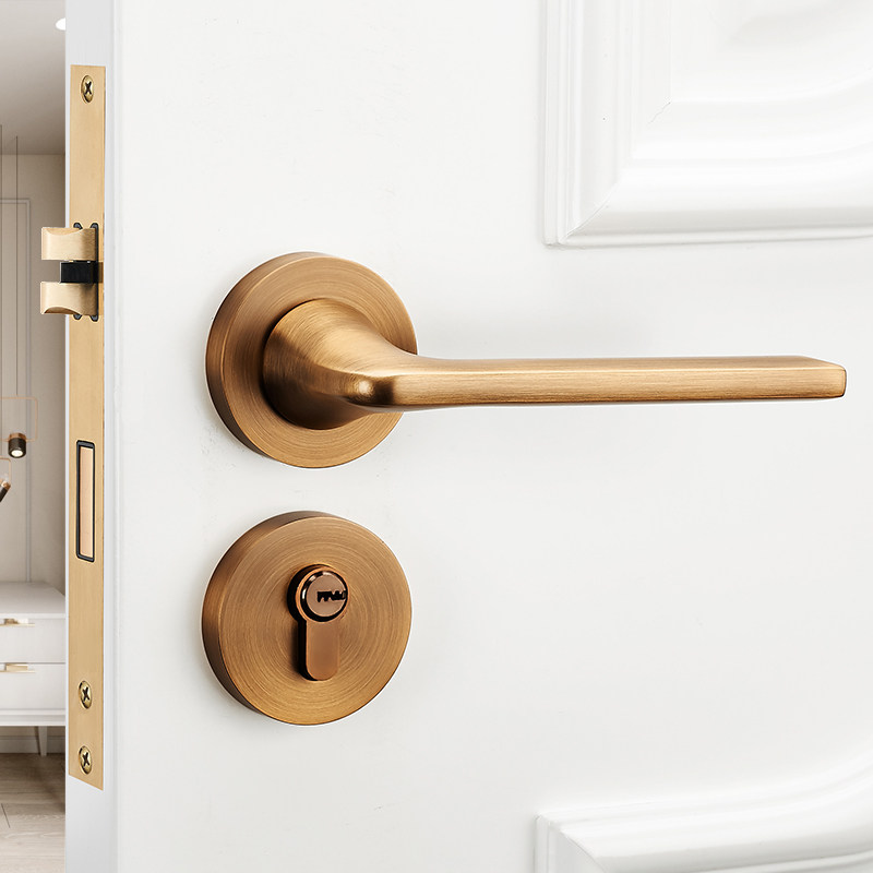 LehengNordic Door Lock Indoor Bedroom House Door Lock Three Suits Yellow Ancient Bronze American Two Style Door Lock PVD Light Extravagant