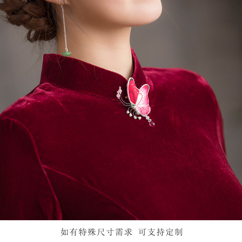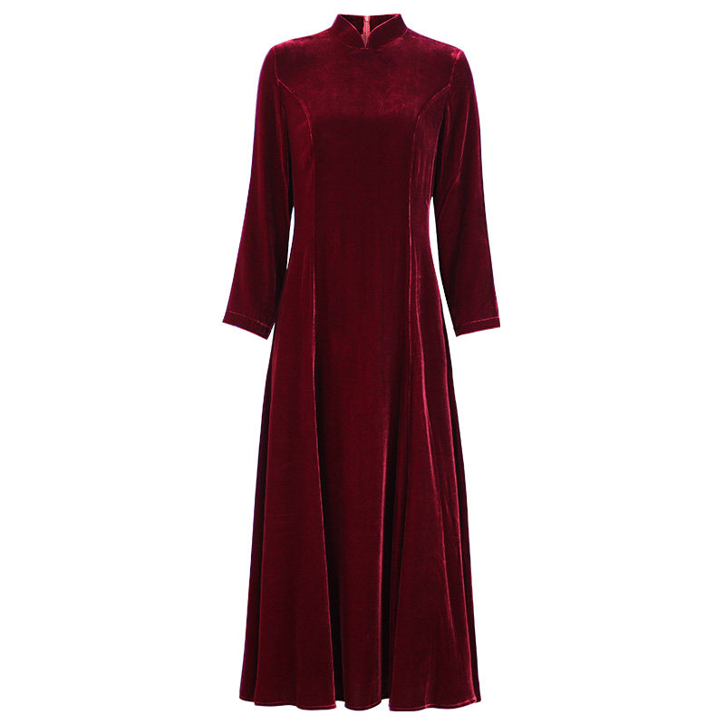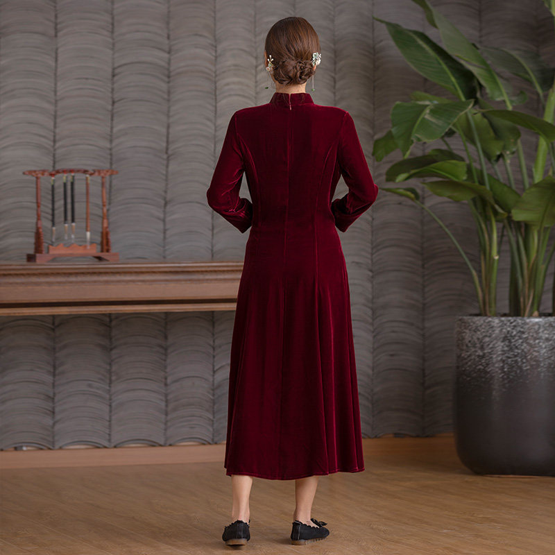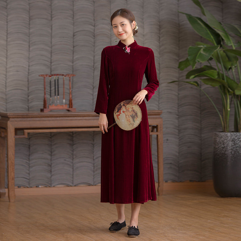 Autumn Water Yao Original (Morning Dew Red Tune) Silk Velvet Improved Chinese Dress Women's Long Sleeve Autumn and Winter Dress
