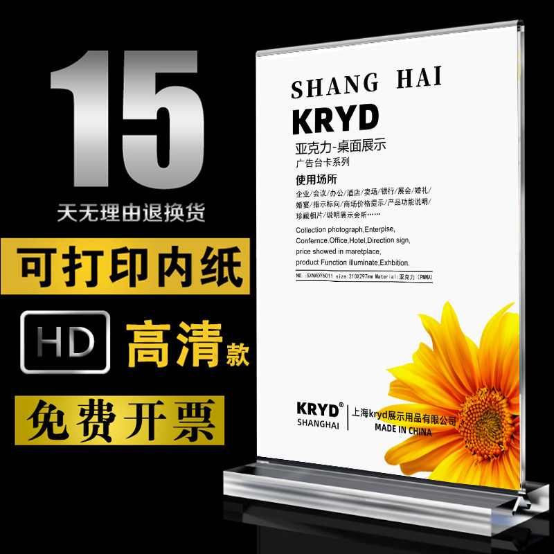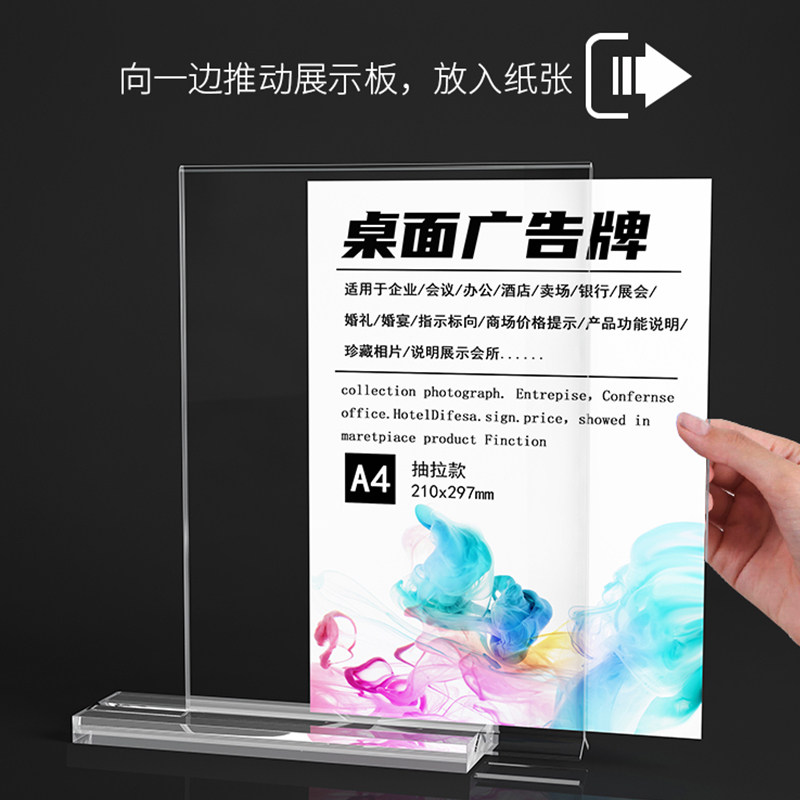 Acrylic table card display card a4 stand card custom table card Desktop advertising strong magnetic table card Price list table wine menu price card double-sided transparent table card table frame Crystal table card menu