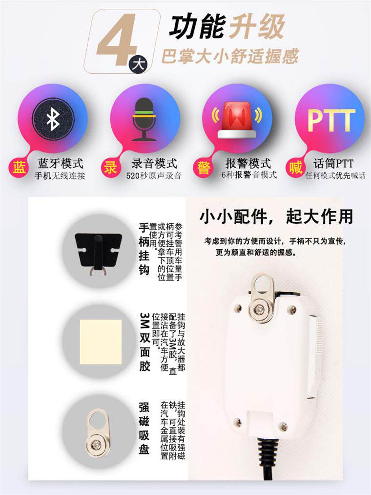 Bluetooth Car Propaganda Megaphone Microphone Priority Alarm Chanter 12V24V outdoor advertisement called to sell the horn