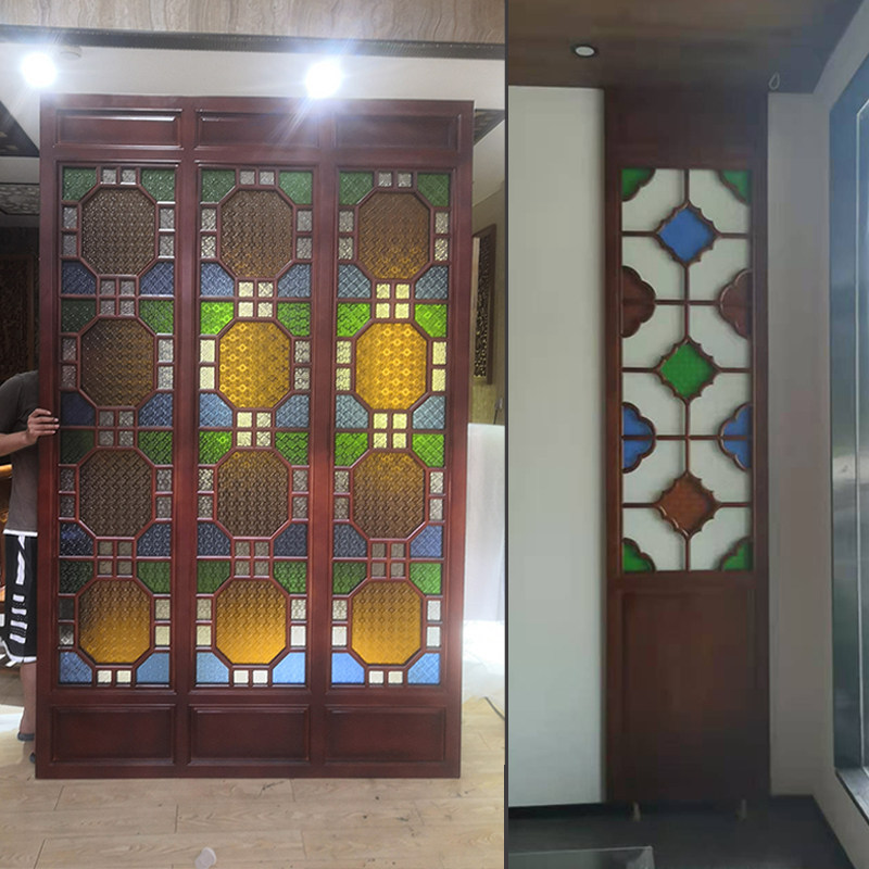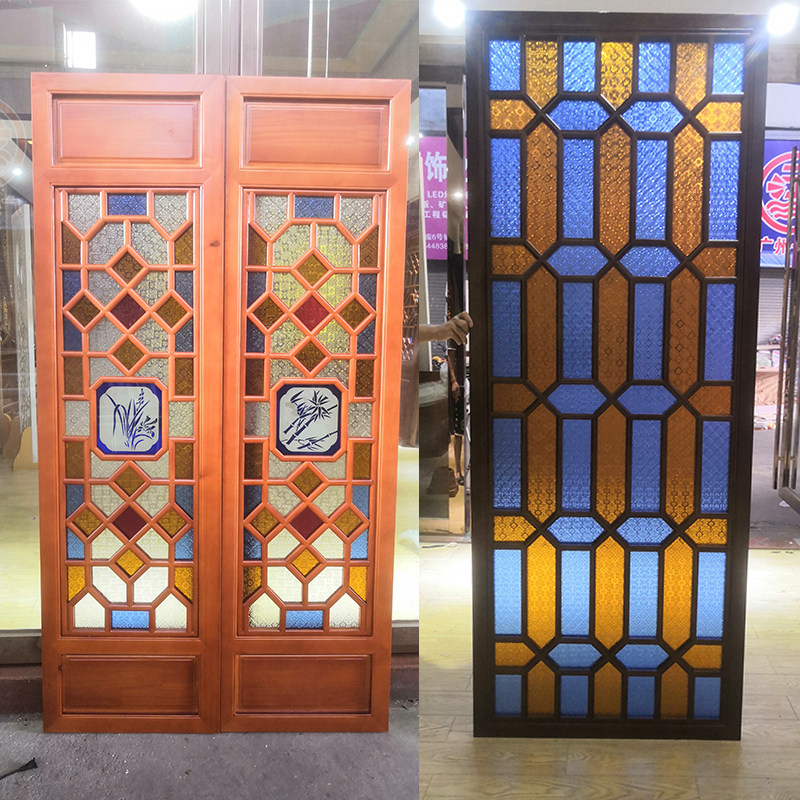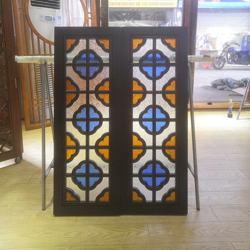 Cantonese-style antique Xiguan Manchurian window solid wood begonia stained glass embossed art glass Lingnan flower window door screen
