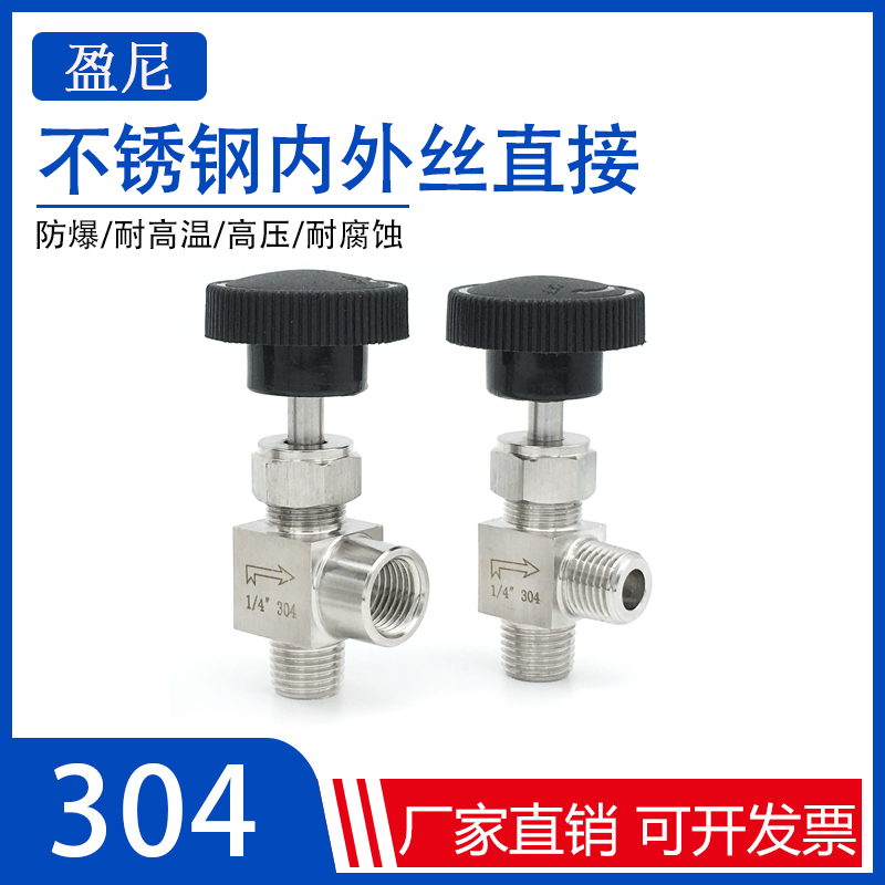 Stainless steel straight needle valve 304 instrument tube cutoff valve inside and outside wire flow adjustment valve 90 degree angle outer wire 2