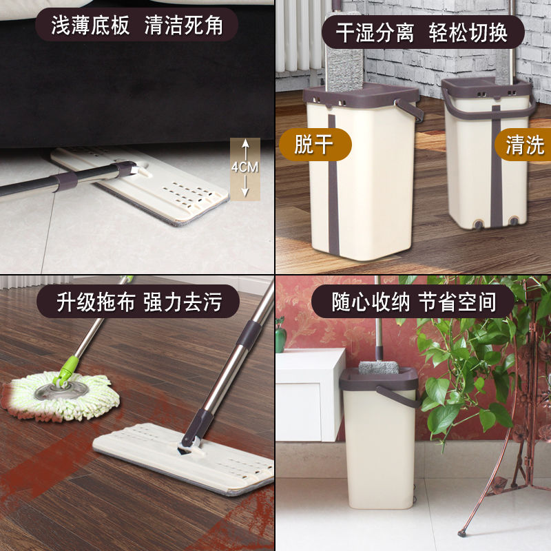 Scratch-free hand-washing flat mop household rotary dry and wet dual-use tile floor one drag clean lazy mop mop