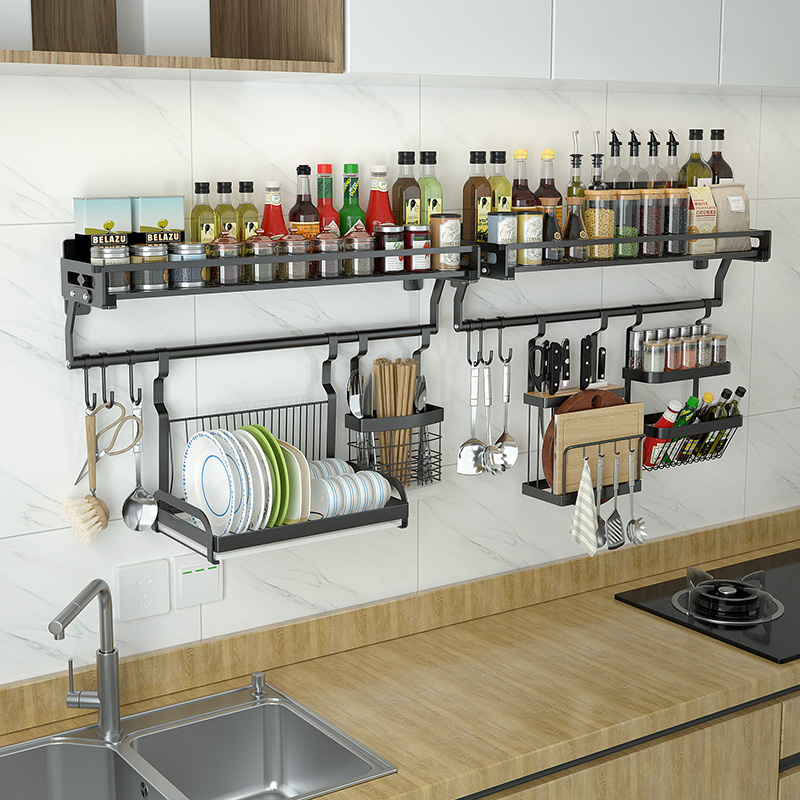 Kitchen seasoning frame wall-mounted non-perforated stainless steel storage rack hanger hanger hanger rod saves space