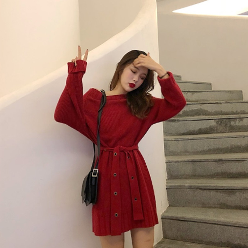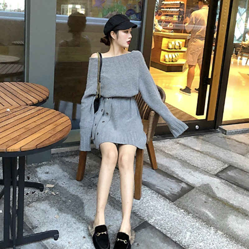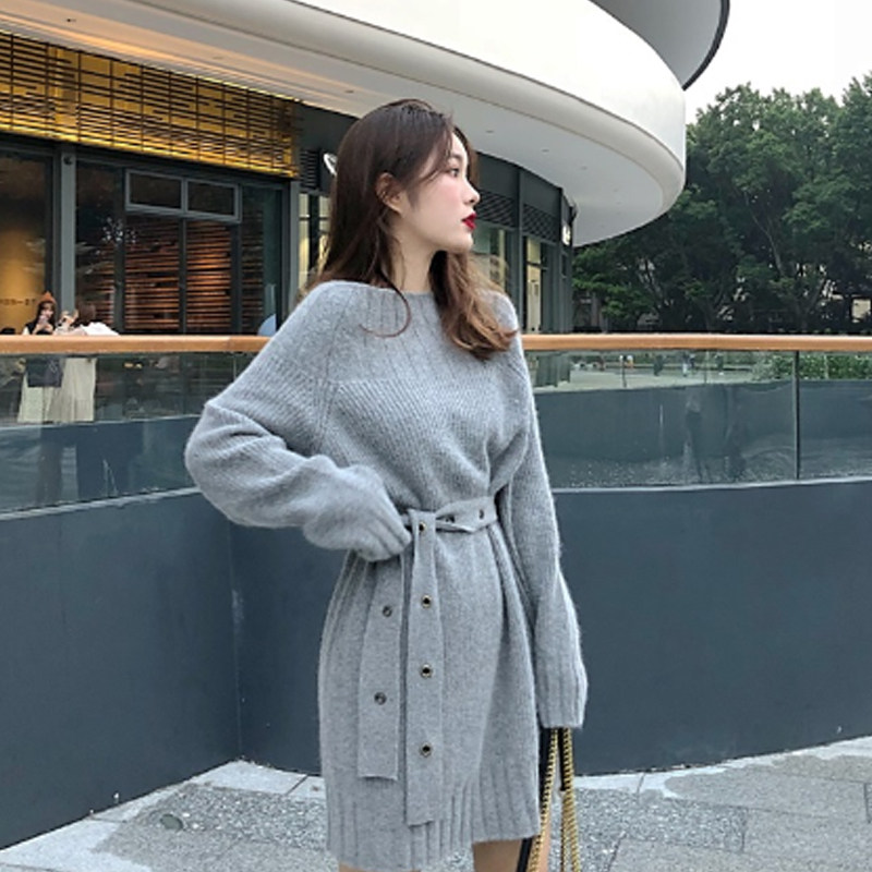 Goddess Fan's long version of sweater skirt over knee thickened Loose Conspicuity Shade of Fat Knit Foreign clothing autumn and winter