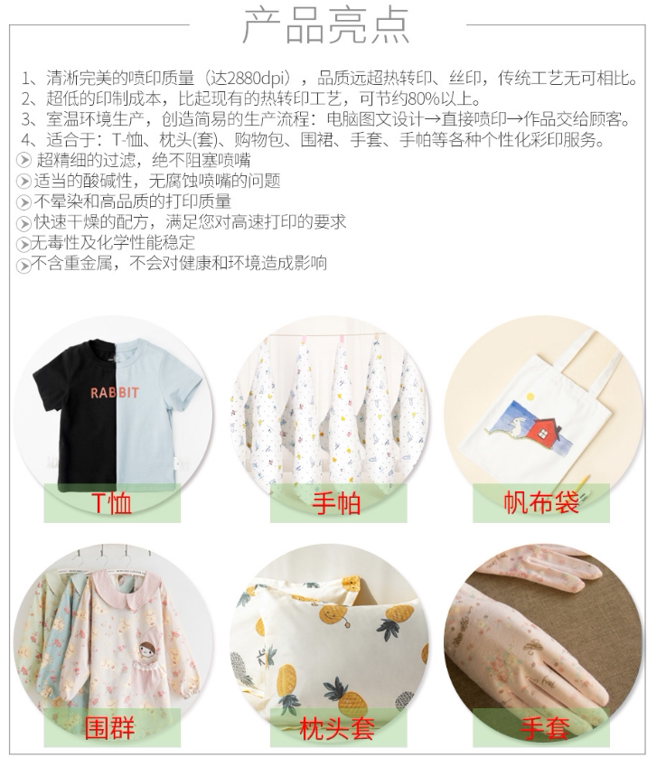 Textile direct inkjet water coating ink Pure cotton ink suitable for EPSON nozzle flatbed machine ink