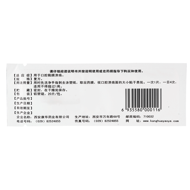 Take out the medicine film and stick it on the affected area according to the size of the ulcerated surface of the mouth, 1 tablet at a time, 4 times a day