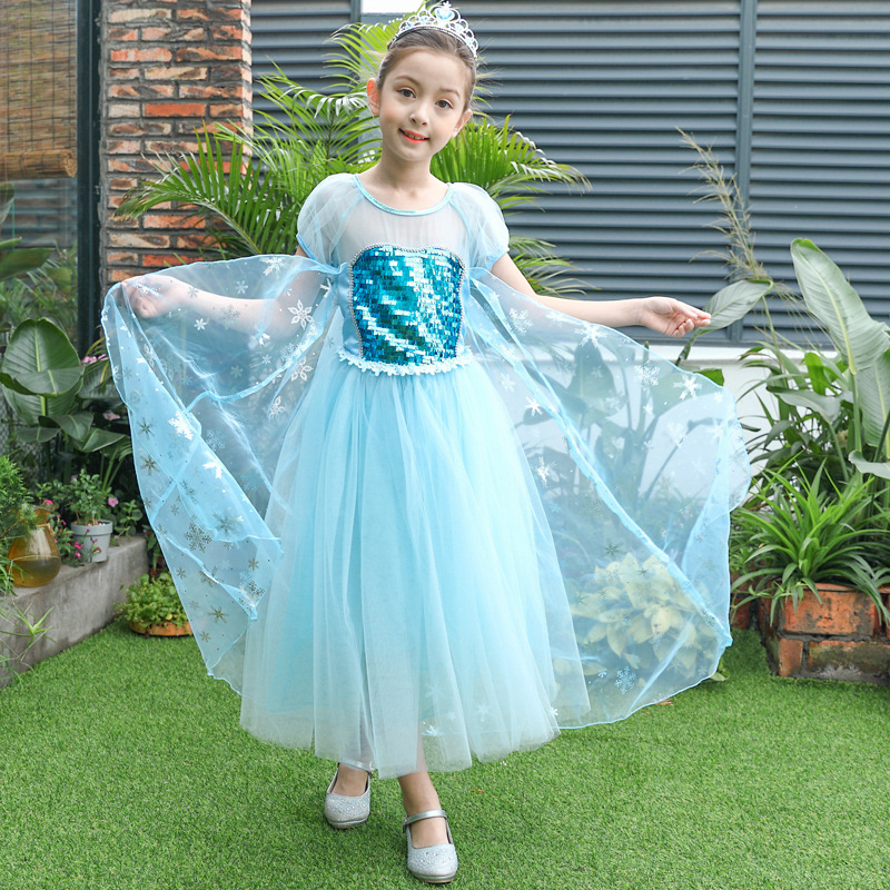 Snow 2 Elsa Princess Dresses Girl Chic Children Foreign Dress Summer Performance Clothing Aisha Gown Elsa Dress
