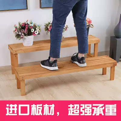 Anticorrosive wood ladder flower wood shop display multilayer balcony stairs floor three ladder shelf