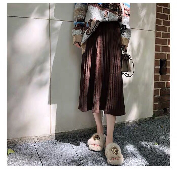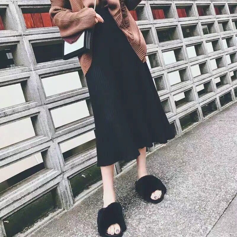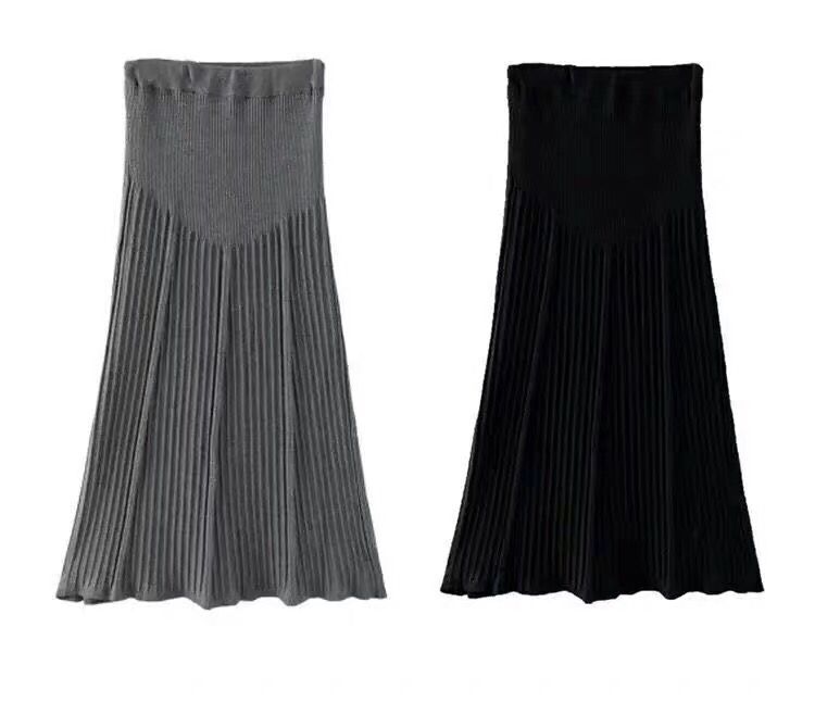 2021 new pregnant woman knit half-body dress with long version of autumn and winter Korean version of the beautiful 100 pleat a word wool line skirt tide