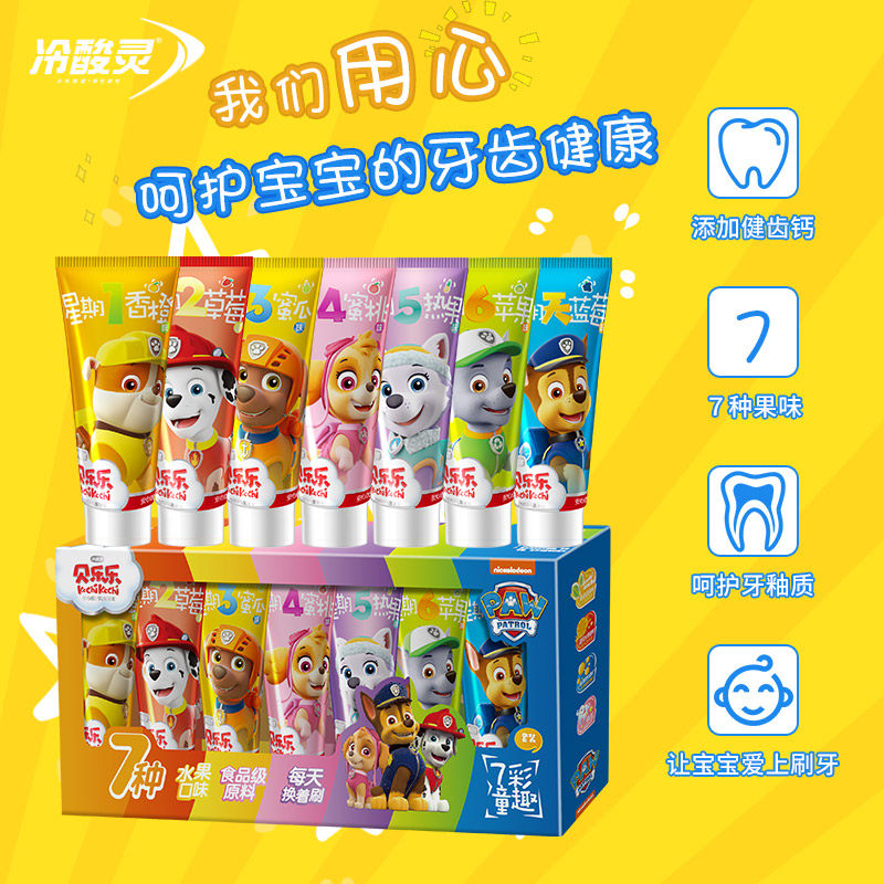 Cold and sour spirit Wang Wang Wang team Beille 7 color children toothpaste 2-6-12 years old and above non-fluorine mild fruit flavor set