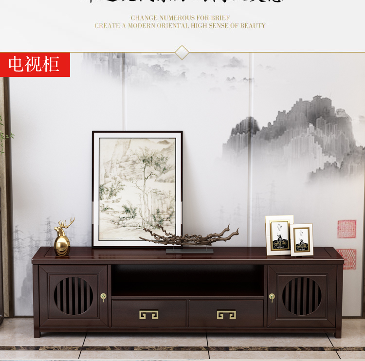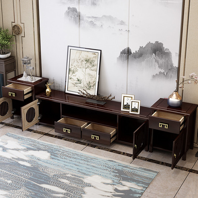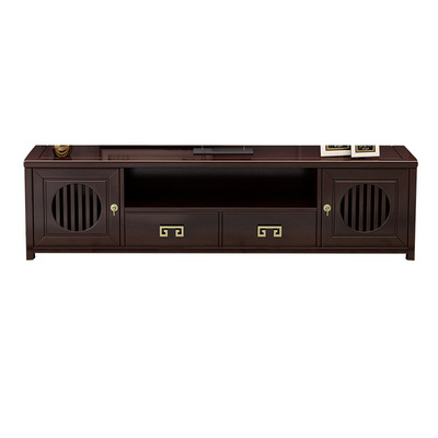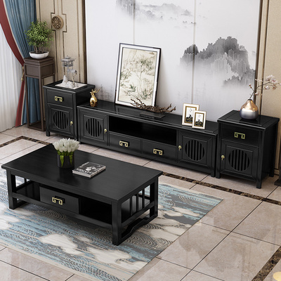 New Chinese solid wood TV cabinet tea table combination suit Living room Chinese new 2 2 m TV cabinet ground cabinet 2 m