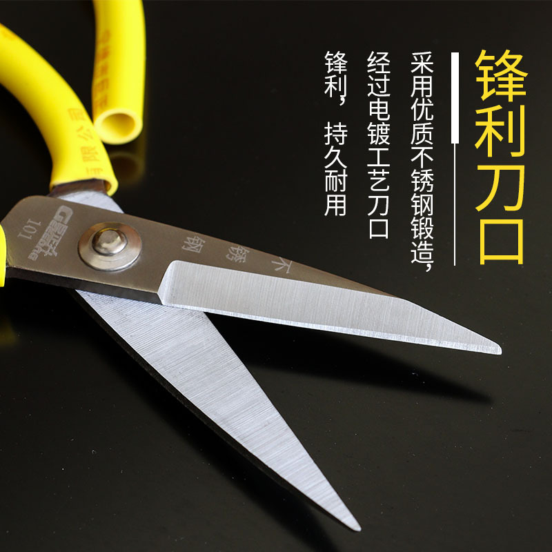 Zheirong Scissors Home Stainless Steel Industry Multifunction Pointed Cut Handmade Leather Scissors Powerful Middle Horn Mouth Scissors