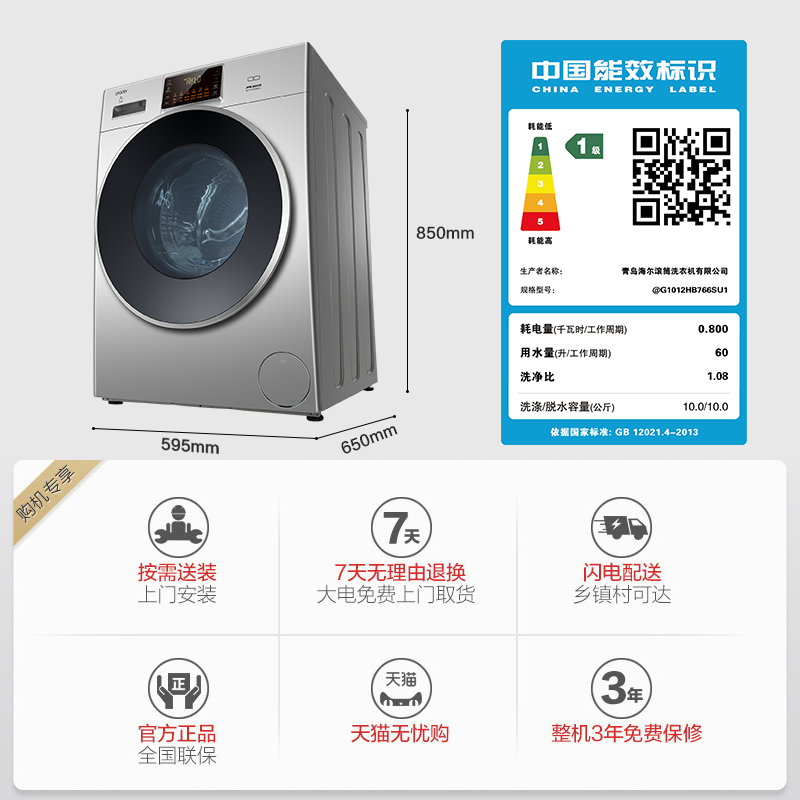 (direct-drive frequency conversion) Haier Products Commander 10kg washout All roller fully automatic washing machine 766