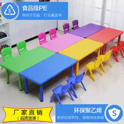 Kindergarten children's table and chair set Plastic rectangular table Children's game table Learning table Dining table Early education table