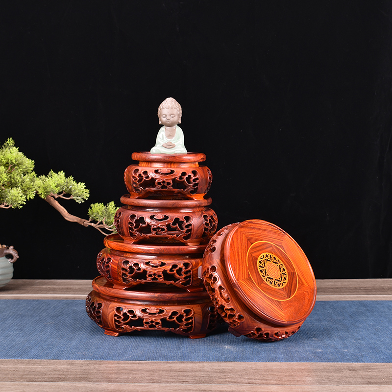 Red Wood Round Handicraft Swing Accessories Base Buddha Jade Head Flower Bottle Bonsai Fish Tank Solid Wood Engraving Base Nursery