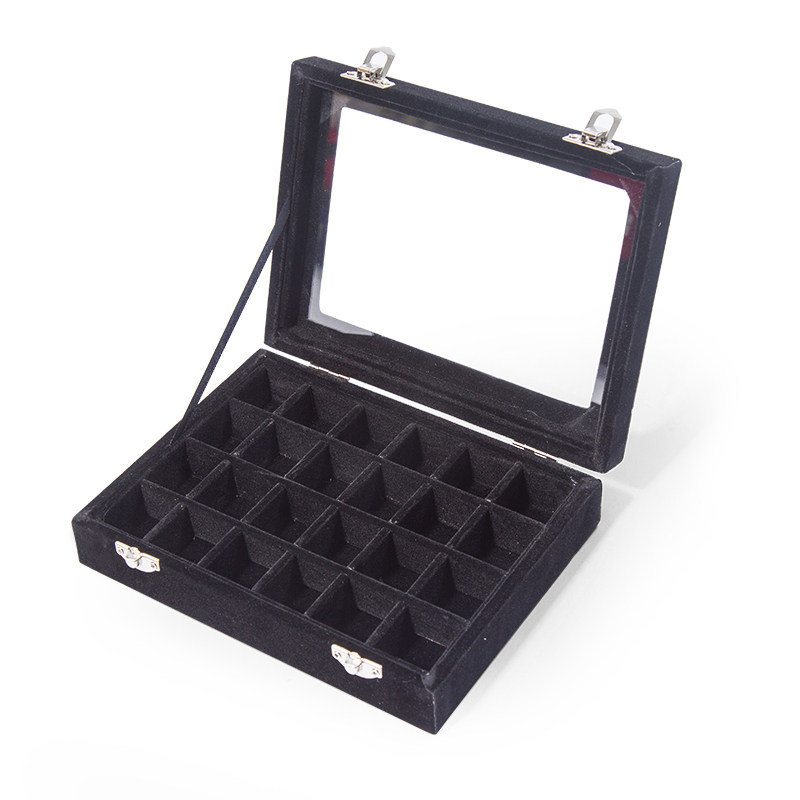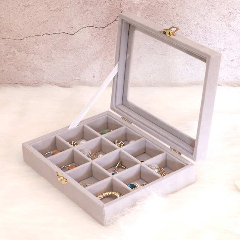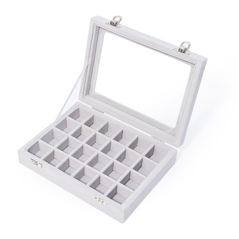 Fawn white Small jewelry box silver buckle gray ring with nine grids Small jewelry box silver buckle gray silver buckle 24 grids Small jewelry box gold buckle gray ring Small jewelry box silver buckle gray 12 grids