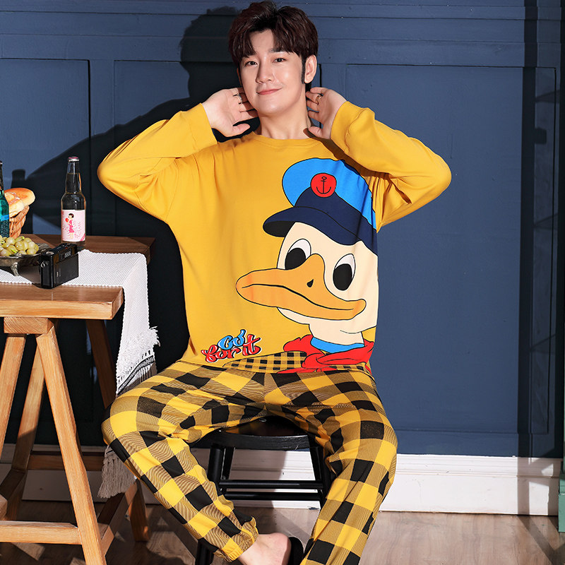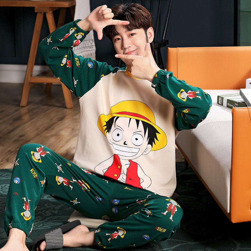 Spring Autumn Season Men's Sleepwear Long Sleeve Pure Cotton Cartoon Teenagers High Middle School Students Full Cotton Autumn And Winter Style Home Suit Suit