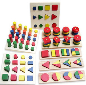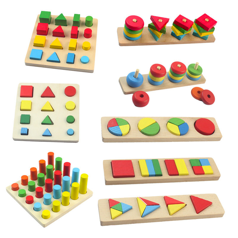 Mon teaching aids 8 pieces of geometric Hugh matching trellis children Early education Puzzle Wooden Toys 3-4-5-6-7-8 years old