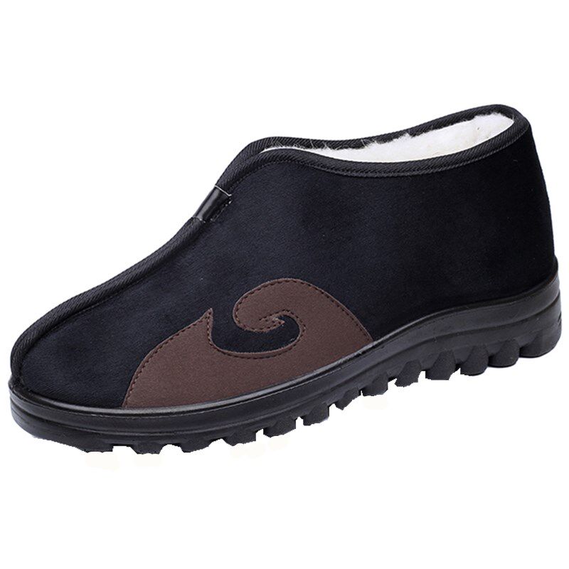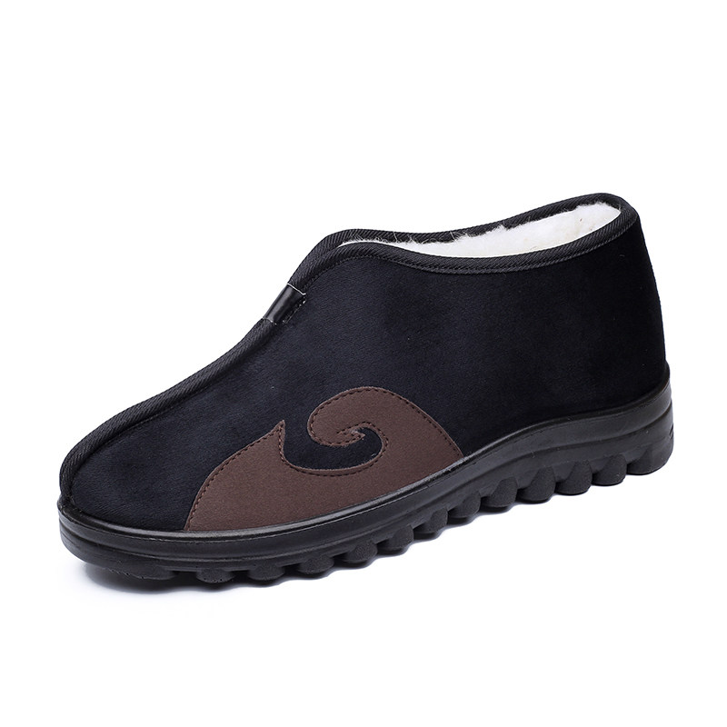 Winter light bottom plush elderly men's cotton shoes comfortable ethnic style pinch nose shoes non-slip middle-aged and elderly grandpa old Beijing
