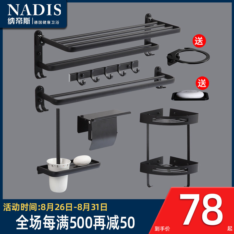 Towels rack Nordic black space aluminum towel rack toilet bathroom hardware hanging suit