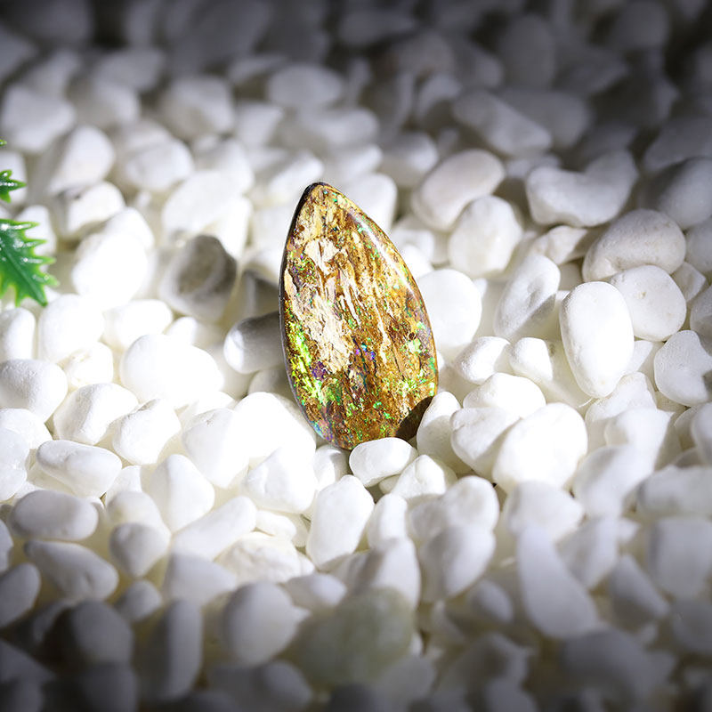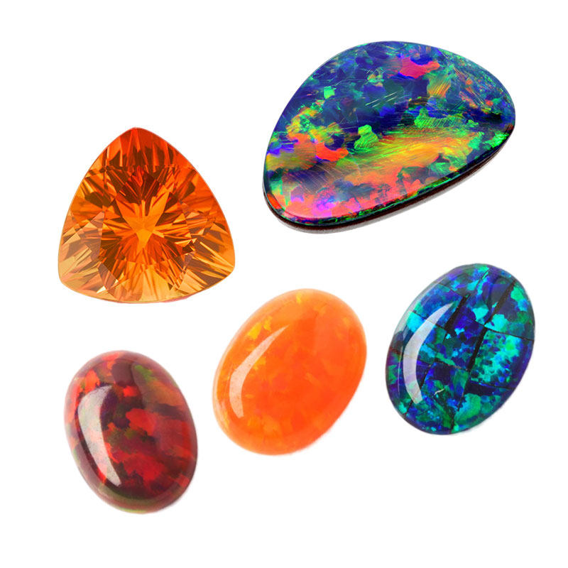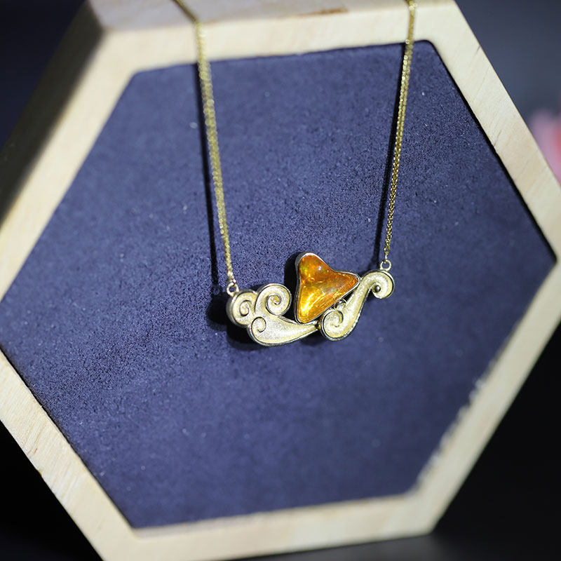 light Opal Mexico Australia Mine Live Colored Gemstone Natural Bare Stone 18K gold necklace Ring