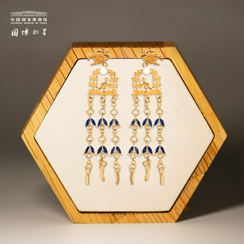 China National Museum Walking Pearl Ear Pendant Female Gufeng 925 Silver Ear Ring Jewelry Gift Box Gift Ventron