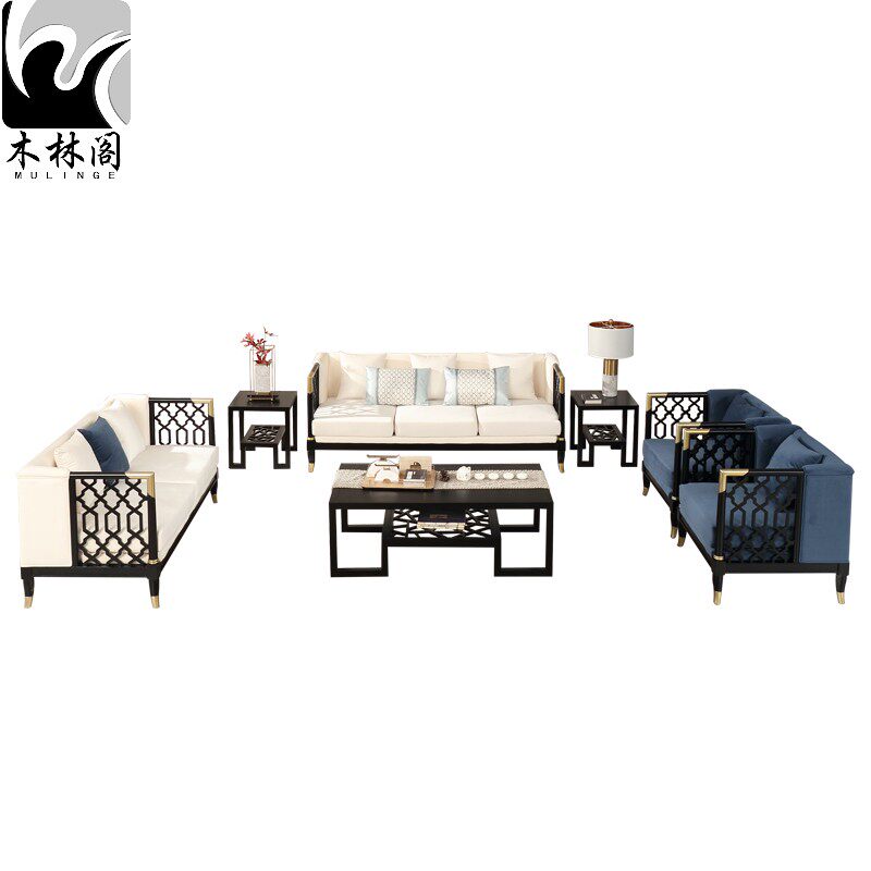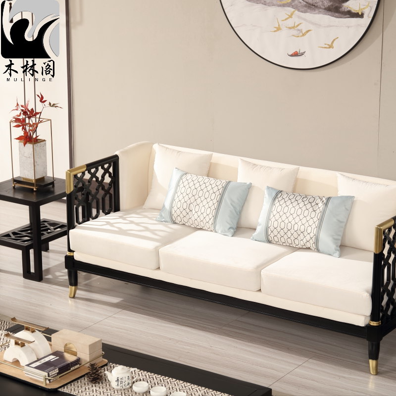 New Chinese style solid wood sofa combination Modern living room simple Zen sofa Model house sample house display center hotel furniture