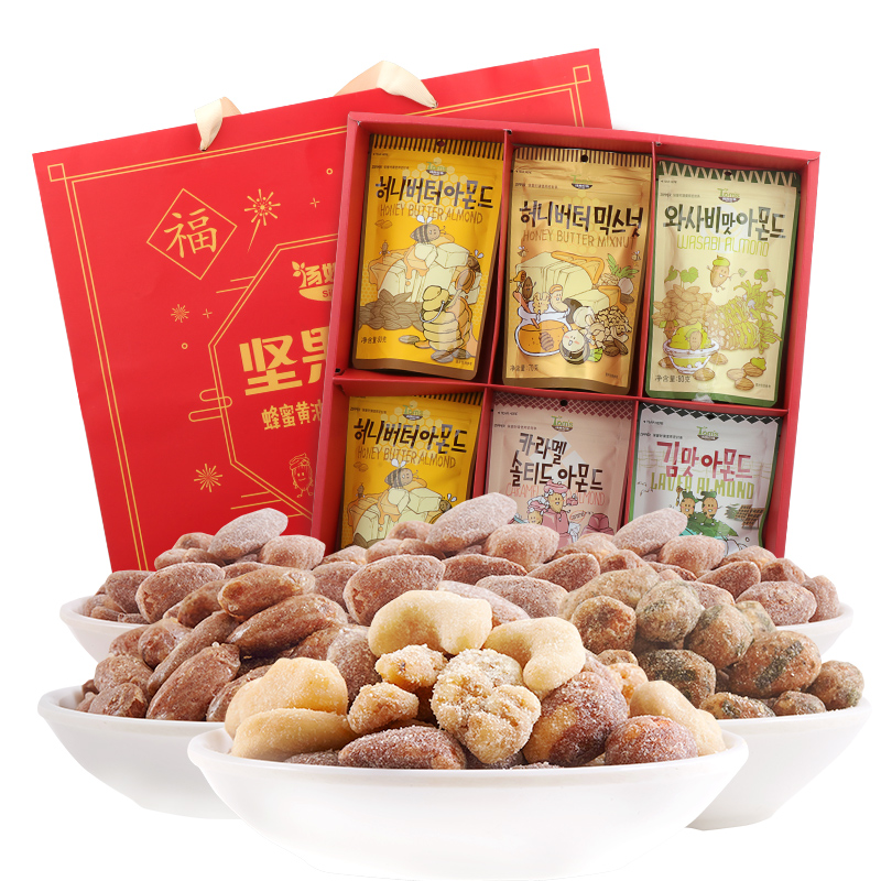Tom Farm happy gift box New Year's Day gift nut combination gift package Almond kernel snack South Korea imported 470g