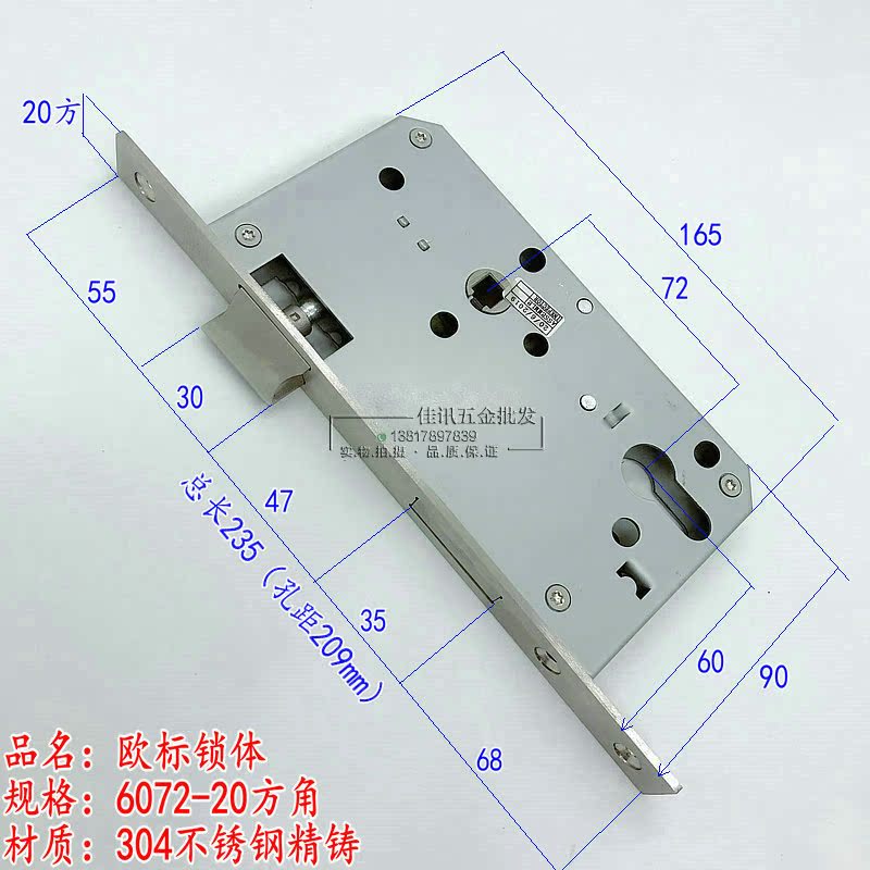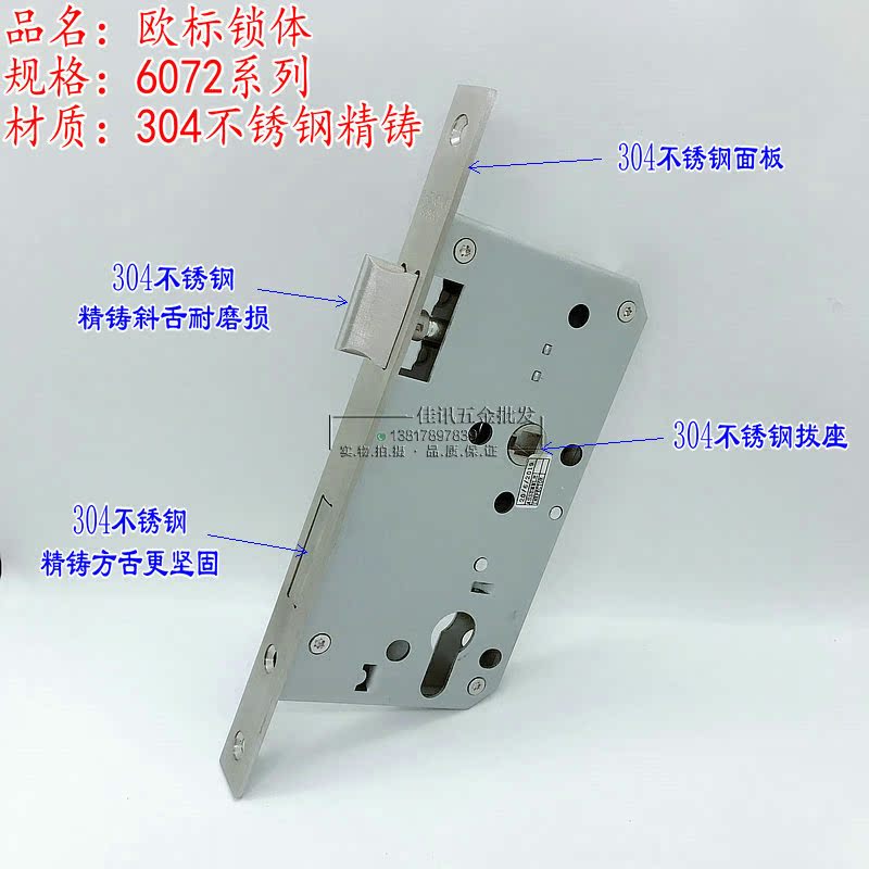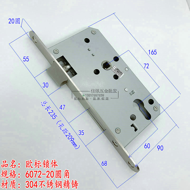 304 stainless steel precision cast lock body European standard 6072N lock body 6072-20 round head 20 square angle lock body fire lock body