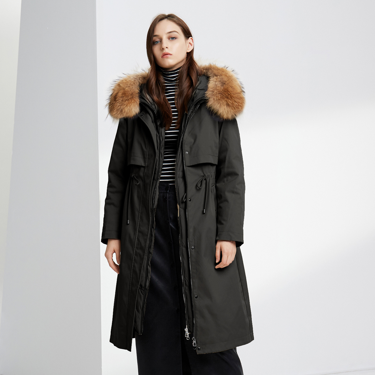Bourgendon female raccoon fur collar Long version warm and cold high quality bacteriostatic elegant temperament Slim Down Clothing
