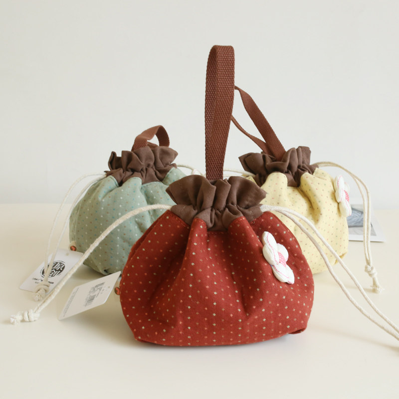Three-color repair program cotton linen fabric art hand bag sweet lady bag Women's drawstring small cloth bag mobile phone bag