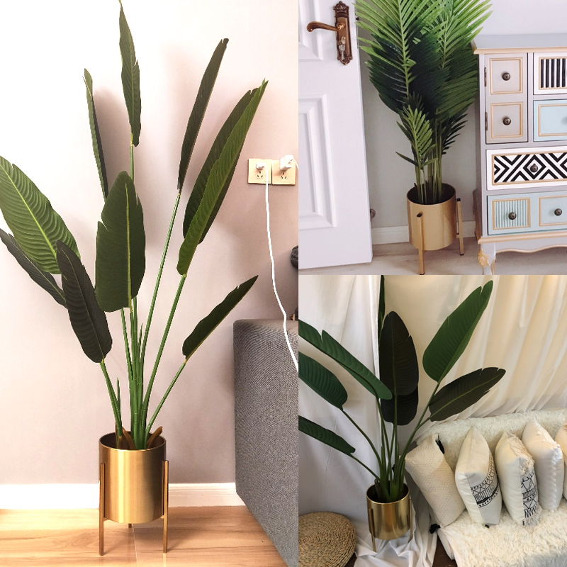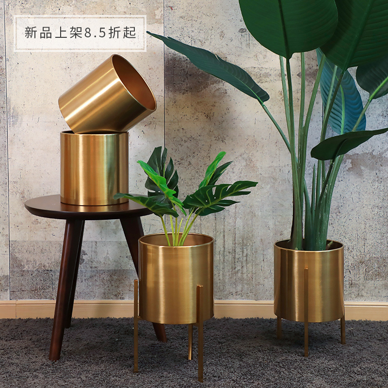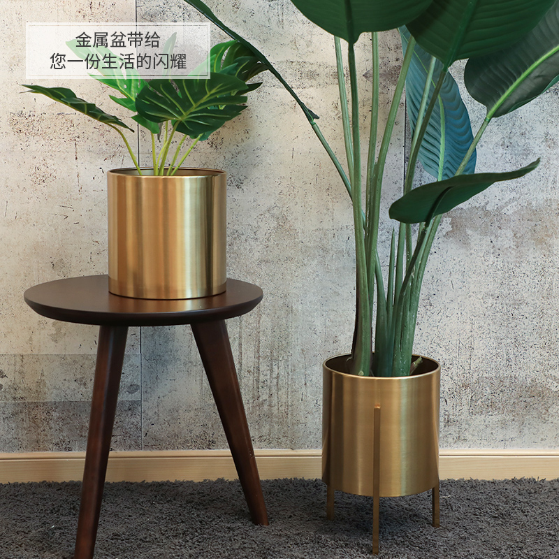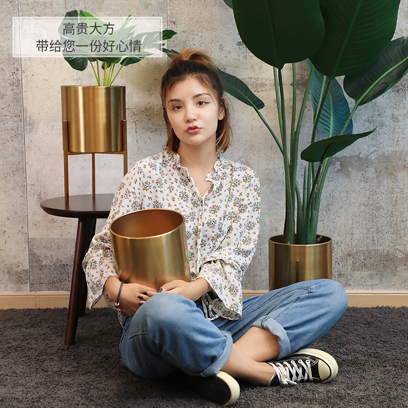 Nordic simple personality Floor-to-ceiling living room creative decoration Large gold flower pot Stainless steel ornaments Wrought iron flower stand