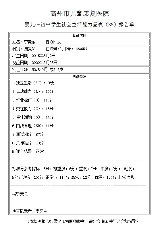 SM Infant - Junior High School Student Social Life Competency Scale Autism and Intellectual Disability Assessment Tool Software