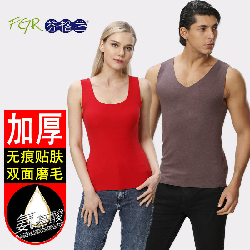 Fengland Seamless Warm Vest Men's Wear Velvet Vest Lady Thickened Sleeveless Amino Acid Thin Suede Autumn Winter Wear