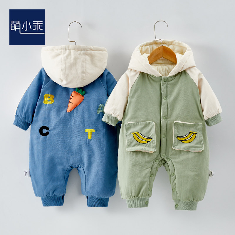 Newborn baby clothes Even swarm clothes autumn and winter Harvest net red plus suede warm men and women go out to hug and winter clothing season