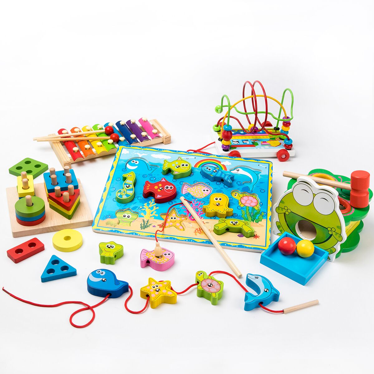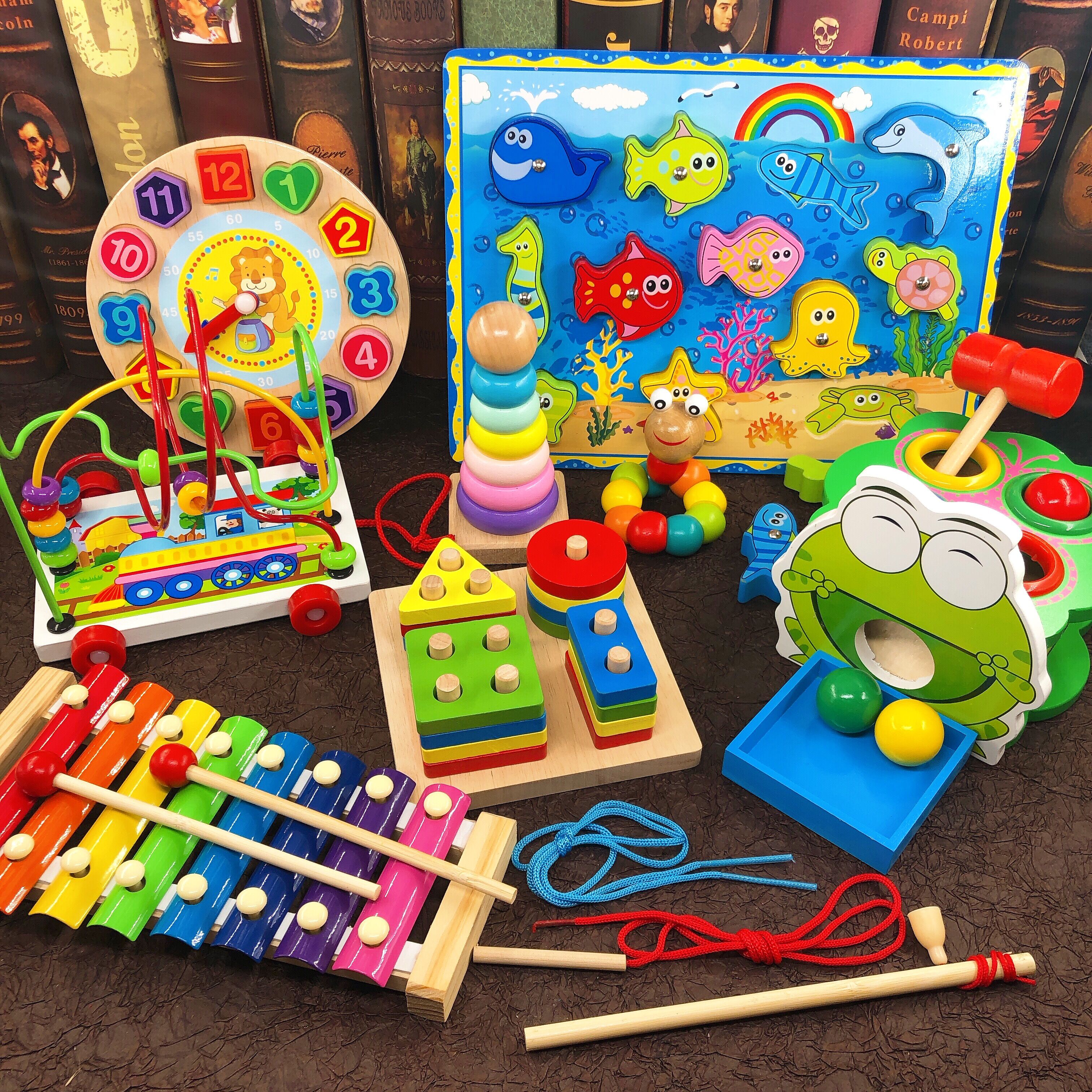 Infant child early teaching building blocks 12-3 years old Magnetic fishing puzzle 6-12 months Puzzle Force Development Around Pearl Toys