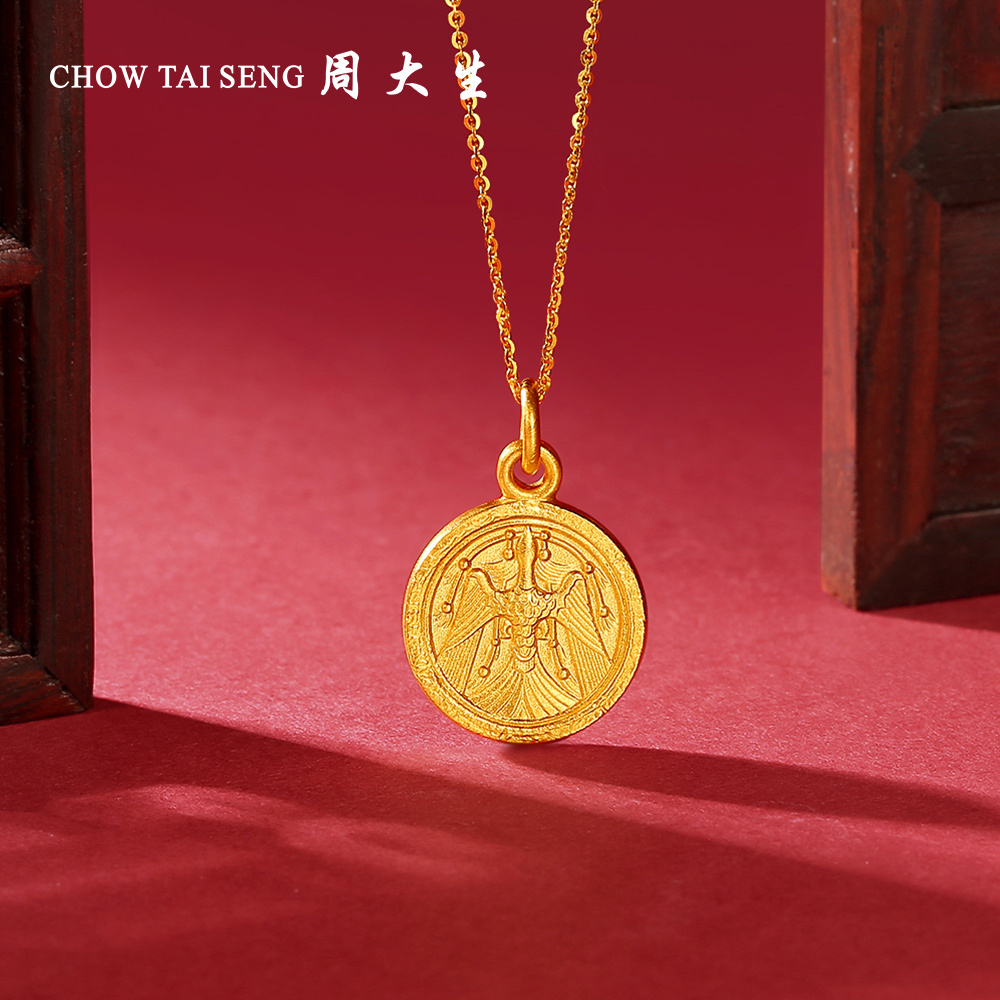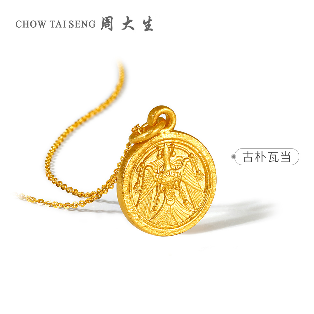Zhou Dasheng gold ancient method pendant female new full gold divine bird round brand tile pendant rope gifts Qifu solid